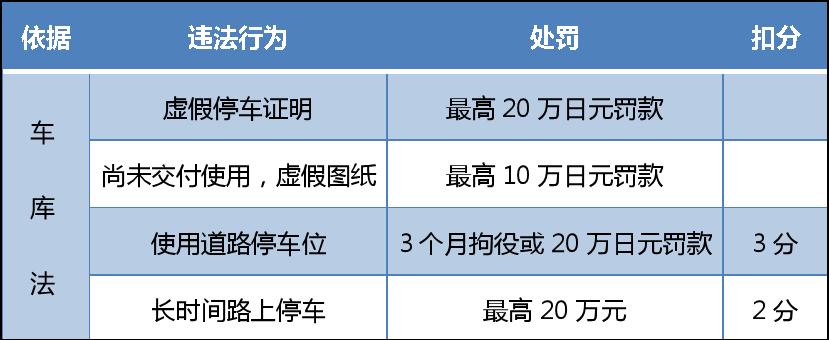 日本《车库法》规定,买车必须先有停车泊位,乱停是违法的。如果驾驶人在路边随意停车,一旦被抓到,就要处以20万日元的重罚或拘役,且要扣3分。扣满6分就会被吊销驾照,3次吊销驾照就会被终身禁驾(见图11)。