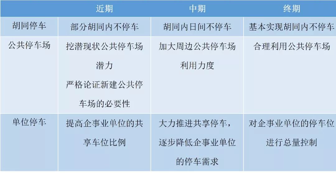 1.1停车现状 (1)停车设施供给有限 历史文化街区土地稀缺、空间局促、用地复杂,受历史原因、风貌保护等因素影响往往建筑配建停车设施和公共停车场较少,供给停车设施十分有限,胡同停车现象严重。 (2)停车供需表面失衡 历史文化街区内居住车位的服务对象应是证件合一的本地居民停车。有限的停车资源如果用于满足所有居民甚至外来人员的停车需求,必然造成供需失衡的现象。在只保障户籍常住人口停车的前提下,停车不应想当然的认为供不应求,而应对每个历史文化街区具体问题具体分析,通过调查判定本地区的实际停车供需。 对历史文化街区停车供需的长期跟踪调查结果表明,部分街区的停车设施基本能够保障本地居民的实际停车需求,但由于认证停车需求不准确、外来车辆长期占用停车位、居民固定停车位使用率低、公共停车场利用率不足等原因,造成表象上的停车供给不足。如南锣鼓巷地区供给停车位1354个,居民登记三证合一的停车需求1171个,其中仅有924辆车夜间长期停放在该地区内。 图1 公共停车场利用率不足 (3)停车占用胡同空间 历史文化街区普遍面临的问题并非供需失衡,而是大量停车占用胡同空间。如南锣鼓巷地区,存在停车的胡同条数占比达60%,被停车占据的胡同长度占比达45%。停车占用胡同公共空间,影响古都风貌,侵蚀了原本安宁的胡同氛围,有悖于老城保护的要求。停车占用胡同消防通道,带来了极大的安全隐患,威胁生命安全。停车占用胡同通行空间,影响交通安全,威胁行人和自行车出行的安全性和舒适性。 图2 胡同停车 图3 胡同停车 1.2症结分析 (1)胡同公共空间停车不收费,吸引大量车辆。 现状胡同内停车未落实收费政策,停车收费价格未能与停车设施类型、停车步行距离等因素挂钩,未能建立起以价格杠杆为主导的停车收费机制,一定程度上吸引了更多机动车在胡同内停放。 (2)社会停车资源的有效利用缺乏统筹。 社会停车资源未能充分用于缓解地区停车矛盾。如南锣鼓巷地区企事业单位自管自用停车位仅5%实现共享,企事业单位普遍缺乏停车位共享的意愿,在推动共享上缺乏强有力的法律法规支撑。 (3)部分居民未形成“停车入位、停车付费、违停受罚”的法律意识。 部分居民对于胡同的功能定位认识不清,仍认为胡同属于少数人拥有的公共空间,多数居民养成了利用胡同空间就近停车、免费停车的习惯。 (4)停车管理与执法力度有待提高,未形成良好的停车秩序。 停车管理机制不完善,车辆进出管理不严。公安交管部门对于支路以下的城市道路区域执法薄弱。 2.1规划依据 北京市历史文化街区的停车规划,应与《北京城市总体规划(2016年-2035年)》保持一致,与正在编制的《核心区控制性详细规划》、《北京市停车专项规划》进行对接,符合《中华人民共和国道路交通安全法》、《北京市机动车停车条例》、《建筑设计防火规范》等相关法律法规、标准规范的要求。 (1)《北京城市总体规划(2016年-2035年)》 改善背街小巷等公共空间面貌,营造宜居环境。让街巷胡同成为有绿荫处、有鸟鸣声、有老北京味的清净、舒适的公共空间。 提高智能交通管理水平,实现包括胡同在内的停车管理全覆盖,提高现有停车设施利用效率,因地制宜开展停车场建设。打通未实施次干路和支路,综合整治道路空间,改善步行和自行车出行环境。 (2)《北京市机动车停车条例》 全社会应当共同构建和维护机动车停车秩序,遵循停车入位、停车付费、违停受罚的基本要求。 服务半径内有停车设施可以提供停车泊位的,一般不得设置道路停车泊位;不具备停车条件的胡同,不得设置道路停车泊位。 (3)《北京市停车专项规划》 发挥停车设施对城市拥车及用车的调节作用,建立与动态交通发展相平衡的静态交通发展格局。将老城地区作为停车严格控制区,建筑物配建指标采取低配建、上限管理,限制城市公共停车场的建设,提高公共交通资源的配置,鼓励绿色出行,营造良好的交通环境。 2.2规划目标 (1)交通规划目标 历史文化街区应建设以人为本、可持续发展的兼具首都风范、古都风韵、时代风貌的安宁交通系统,打造精品胡同片区,让胡同居民过上现代生活。 交通空间以静制动:停车秩序好起来,胡同街区静下来。 交通方式快慢相宜:绿色交通快起来,小汽车交通慢下来。 交通风貌相依相融:交通与老城风貌、历史文化保护协调。 交通生活共存共生:交通空间与高品质、特色化生活空间共融。 (2)停车规划目标 历史文化街区机动车停车规划由问题导向转向目标导向,由增量规划转向减量规划,打造精品安宁街区。分成近、中、远三个阶段制定停车规划目标,逐步利用停车调控交通出行结构,提升历史文化街区环境品质。 第一阶段:近期 适度满足户籍常住人口的停车需求,遵循减量化原则设置胡同内停车位,开展部分胡同内不停车工作,挖潜现有公共停车场潜力,严格论证新建公共停车场的必要性,对于地下停车场的建设要慎重考虑,提高本地区企事业单位的共享车位比例,适度利用腾退空间满足户籍常住人口的停车需求,实现胡同内机动车停车有序。 第二阶段:中期 逐步推行胡同内日间不停车,加大周边公共停车场利用力度,大力推进共享停车,并逐步降低本地区企事业单位的停车需求,扩大胡同内不停车范围。 第三阶段:远期 合理利用公共停车